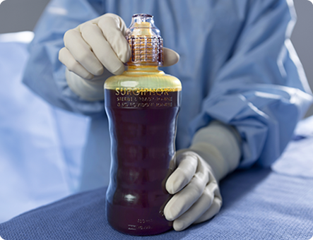 Surgiphor™ Antimicrobial Irrigation System is a pre-mixed, terminally sterile dilute povidone-iodine (PVP-I) surgical irrigation system. It is ready to use, enabling you to deliver a dilute PVP-I lavage to mechanically loosen and remove debris and foreign materials, including microorganisms, from wounds.