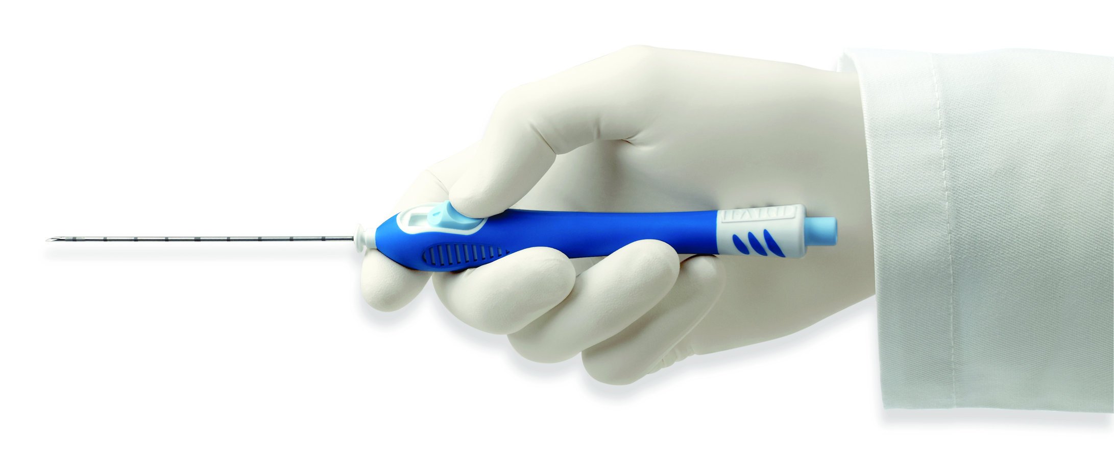 UltraClip Dual Trigger, marcador mamario para seguimiento de lesiones, diseñado asegurando la visualización permanente por ultrasonido.